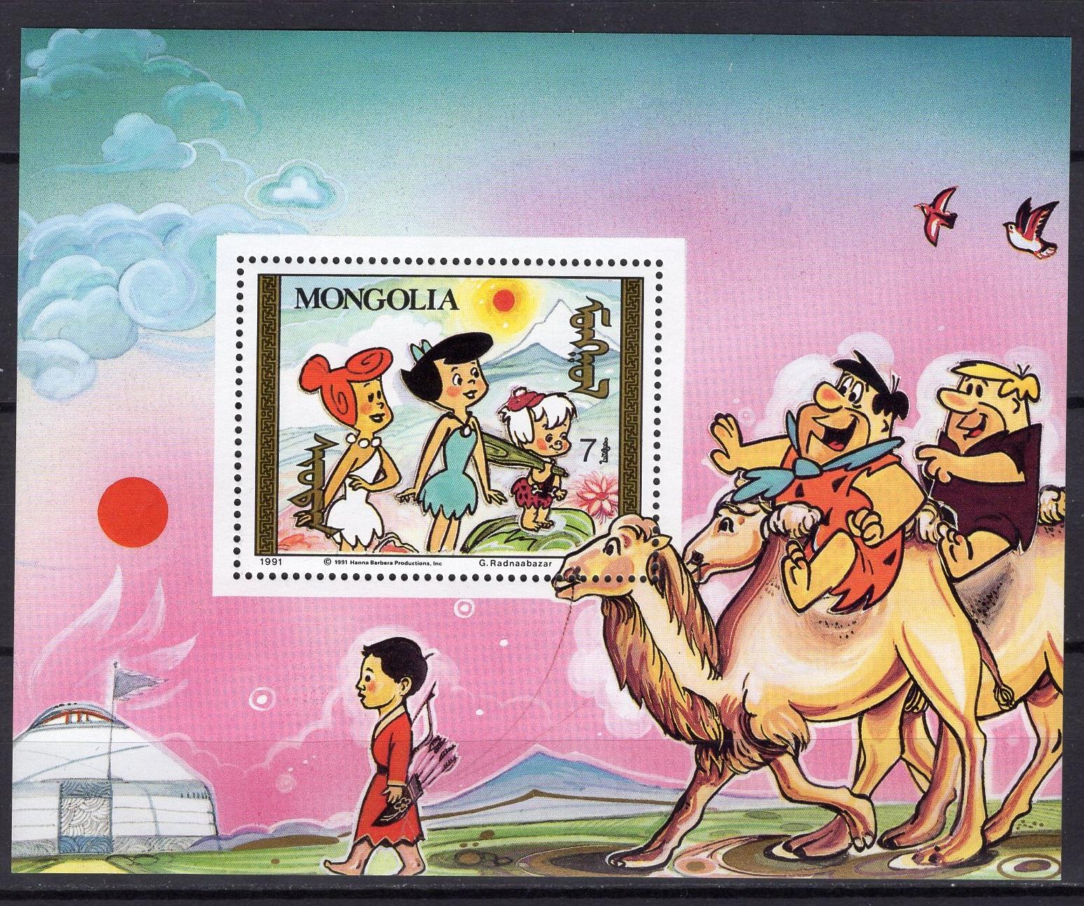 Почтовые марки. Монголия, 1991 г. Мультфильмы . Бл. 158