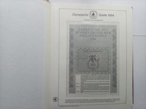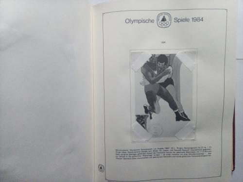 Иллюстрированный альбом для марок, карточек, конвертов.. Про-во Германия. Олимпийские игры 1984г. 93 листа. 270х310мм. Б/У.(Сост. - хорошее, есть надписи на листах карандашом)