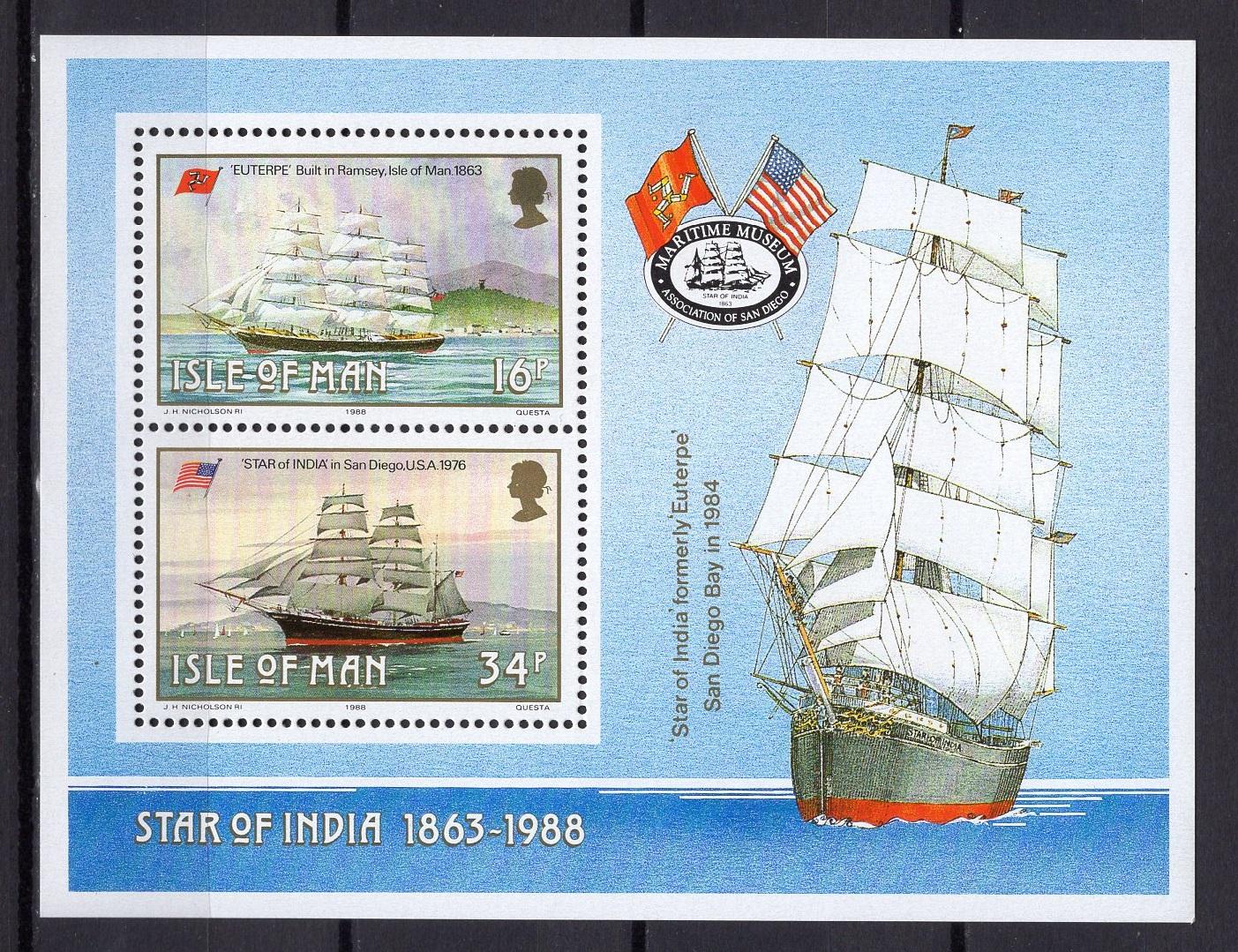 Почтовые марки. О. Мэн, 1988 г. Корабли. Парусники.