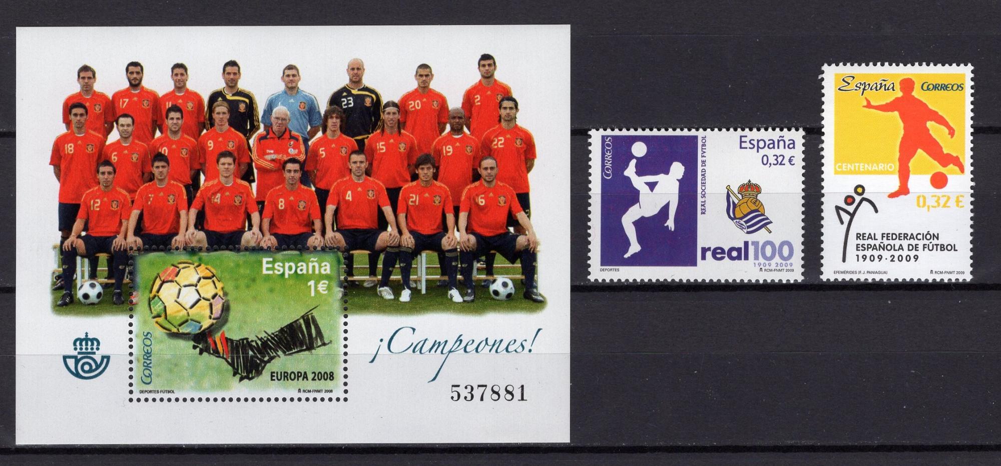 Почтовые марки. Испания, 2008-2009 г. Футбол. №4430, 4454, Бл. 172