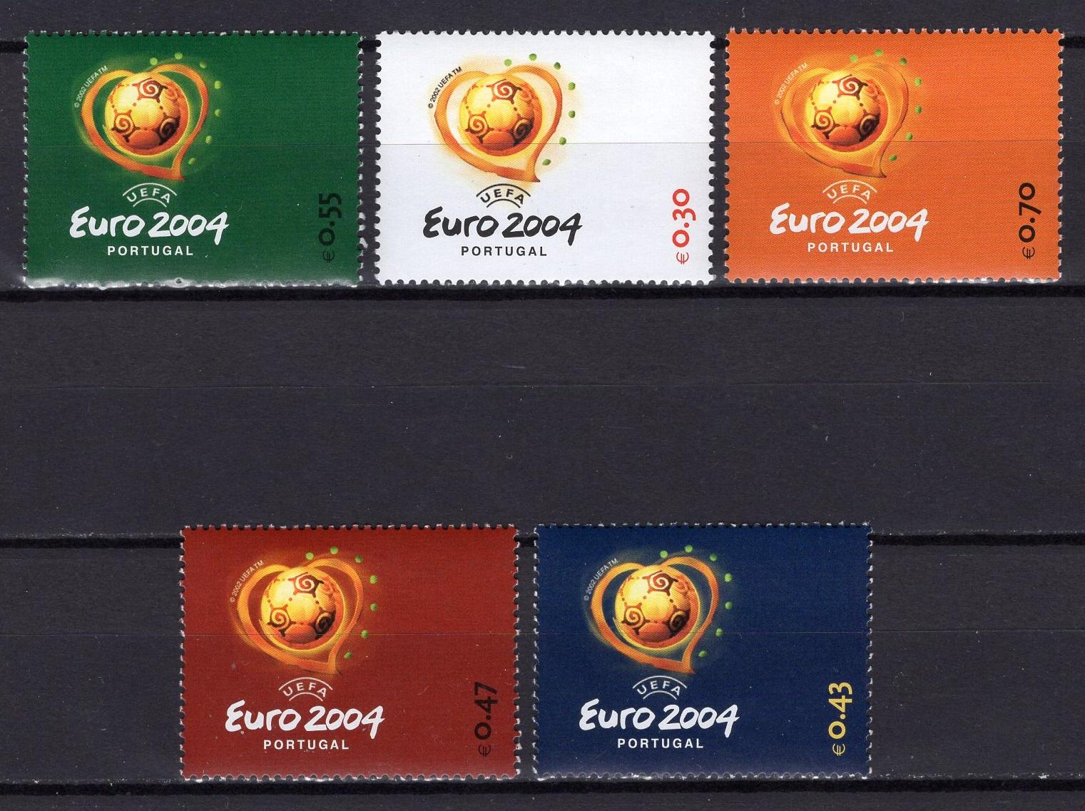 Почтовые марки. Португалия, 2003 г. Футбол. №2686-2690. (Дефект скана - по нижнему краю марки нет светлой полосы).