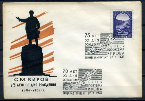Конверт с маркой и СГ. СССР 1961 г. 75 лет со ДР С.Ь. Кирова. КЗ.