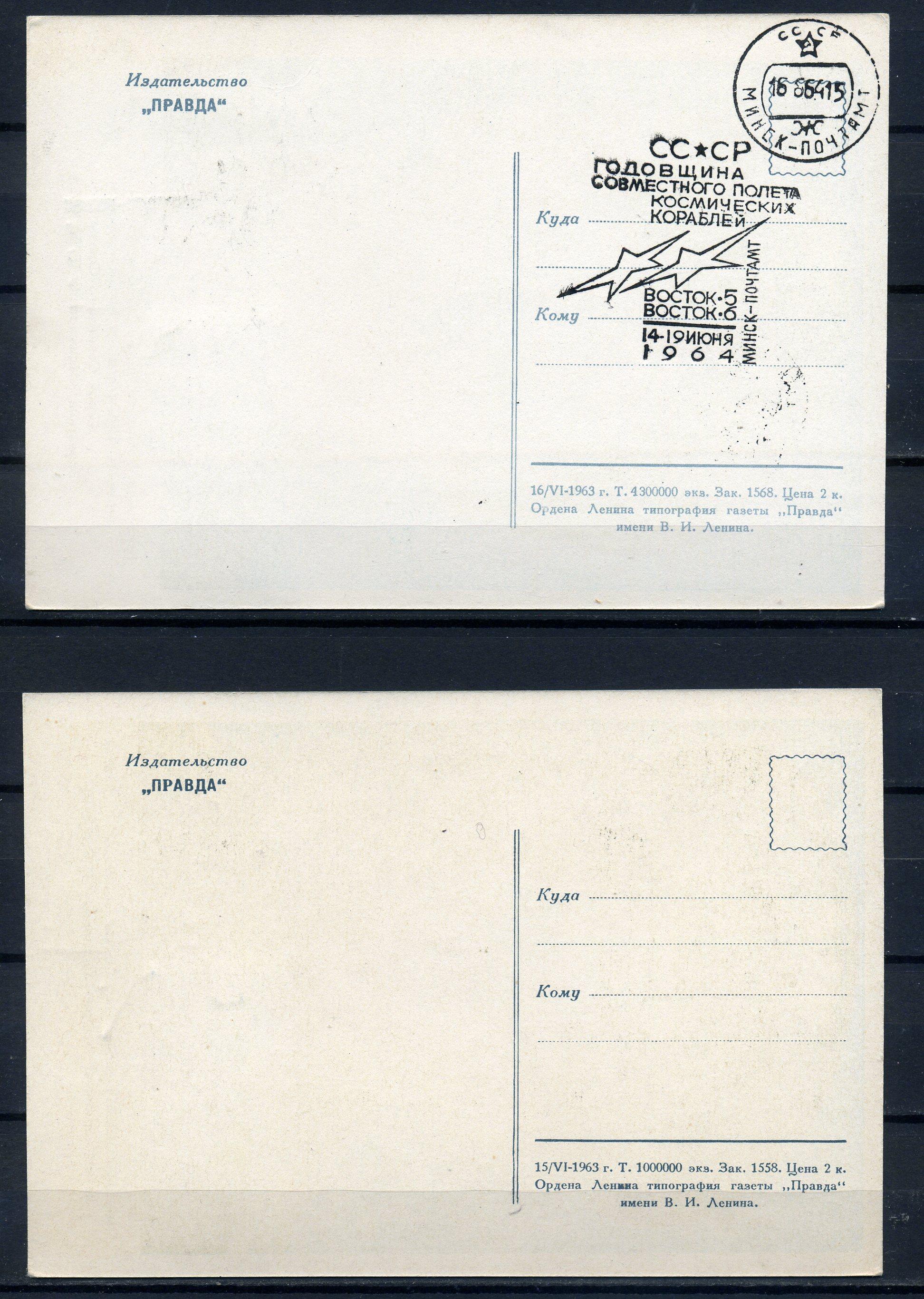 Картмаксимум. СССР 1964 г. Годовщина совместного полета косм. кораблей "Восток-5" и "Восток-6".
