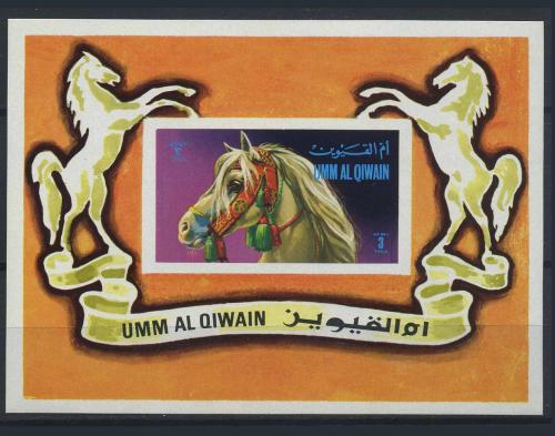 Почтовые марки. Умм-эль-Кайвайн. 1972г. Лошади. Блок №36в. Беззубц.