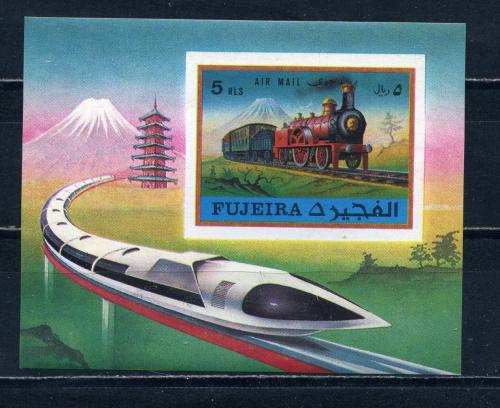 Почтовые марки. Фуджейра. 1971г. Локомотивы. Блок №47В. Беззубц.
