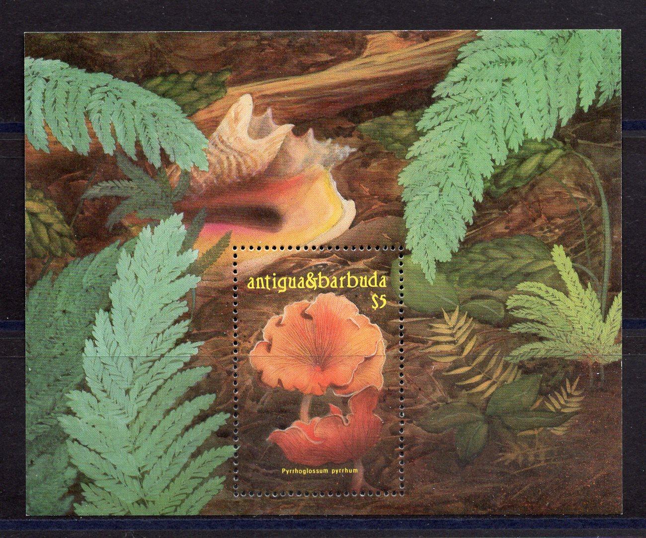 Почтовые марки. Антигуа и Барбуда. 1986 г. Грибы. Блок №116.
