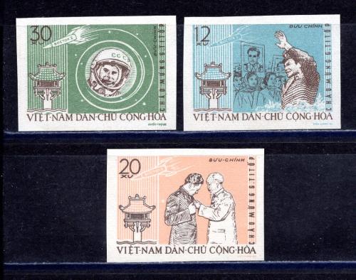 Почтовые марки. Вьетнам. 1962г. Космос. Титов. №217в-219в. Беззубц.