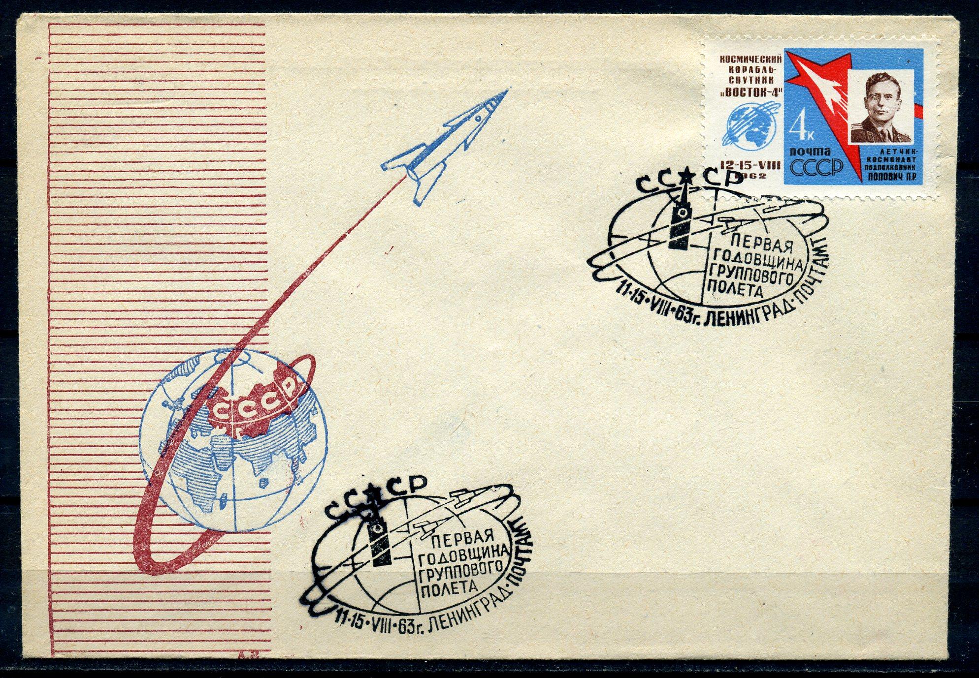 Конверт с маркой и СГ. БССР 1963 г. 1-я годовщина группового полета. "Восток-4". КО. тир. 3000 экз.