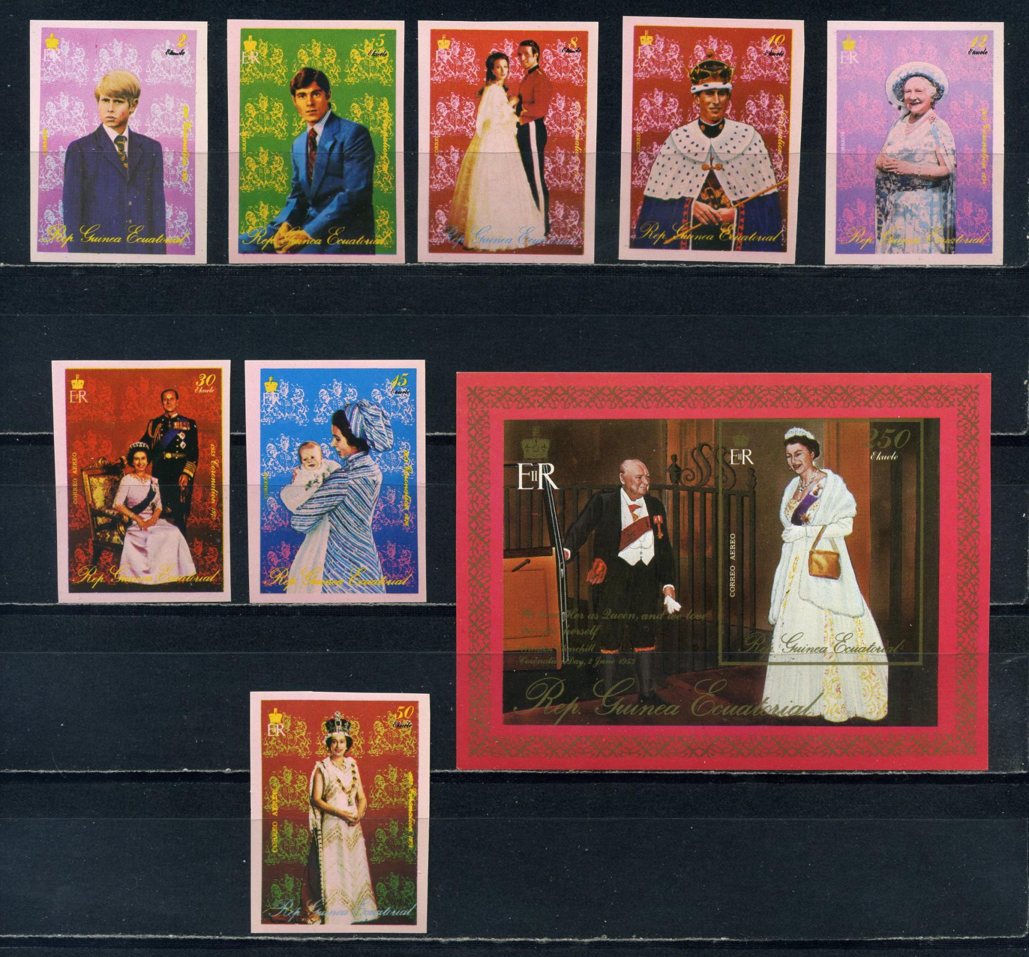 Почтовые марки. Экваториальная Гвинея. 1978г. Королевская семья. №А1333в-А1340в. Блок №296. Беззубц.