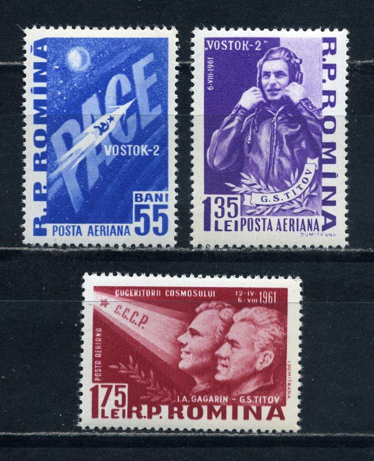 Почтовые марки. Румыния. 1961г. Космос. Гагарин и Титов. №1994-1996.