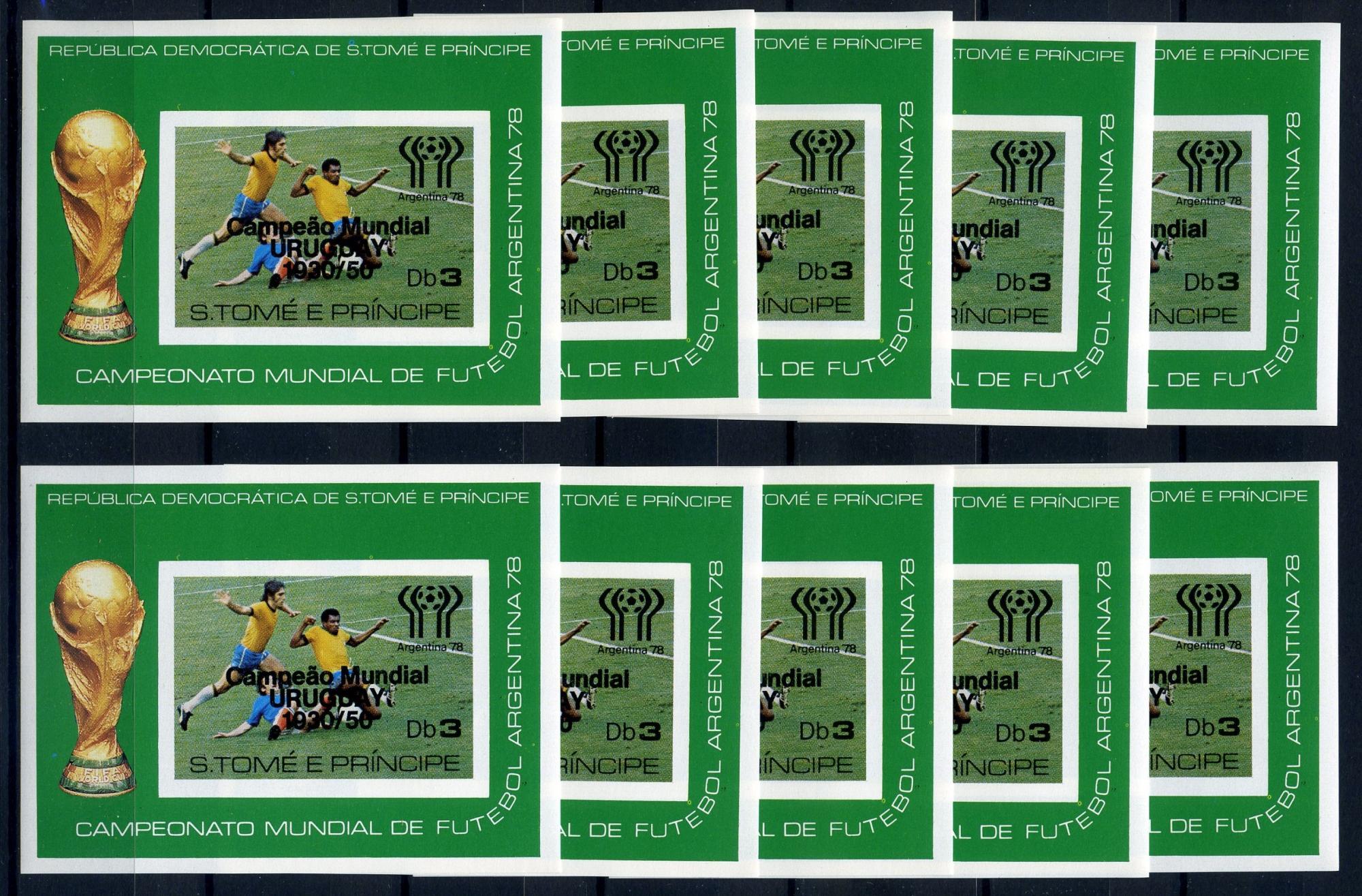 Почтовые марки. Сан-Томе. 1979 г. № Бл. 25В. Футбол. Уругвай. Надпеч. 10 шт.
