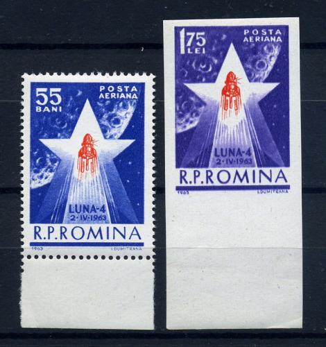 Почтовые марки. Румыния. 1963г. Космос. Ракета. Зубц. + безз. №2143-2144.