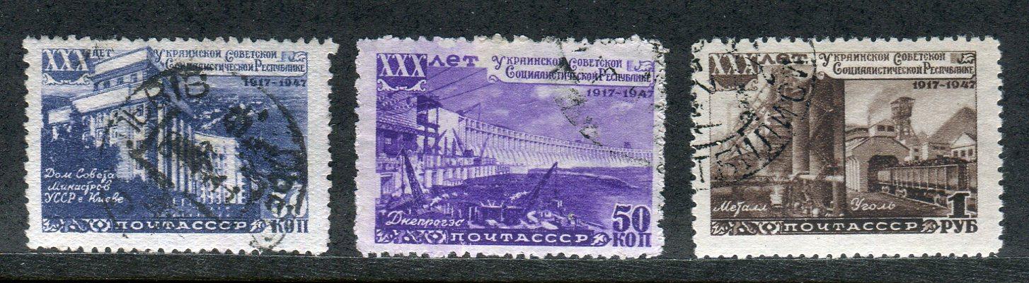 Почтовые марки. СССР, 1948 г. № 1230 - 1233. Без № 1232. Украина.