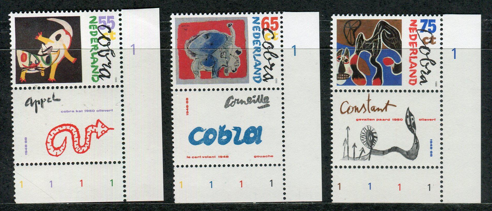 Почтовые марки. Нидерланды, 1988 г. Современное искусство. №1347 - 1349 + дек.поле.