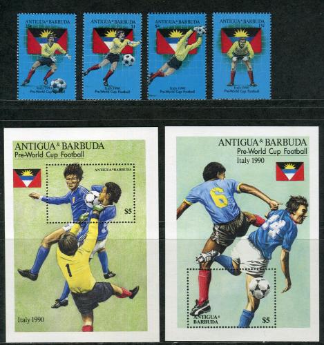 Почтовые марки. Антигуа и Барбуда, 1989 г. Чемпионат мира по футболу 1990 года, Италия. №1252 - 1255, Блок № 160, 161. (Mi 19.00 €)