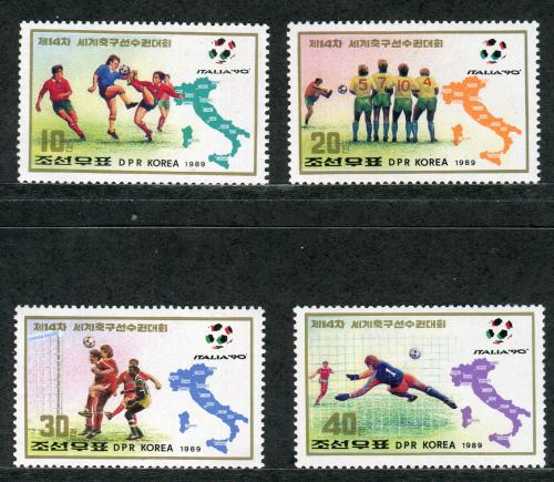 Почтовые марки. КНДР, 1989 г. Чемпионат мира по футболу ФИФА, Италия. №3070 - 3073.
