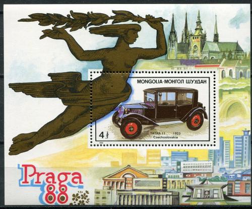 Почтовые марки. Монголия. 1988. Филвыставка. Автомобили. Бл. №128.
