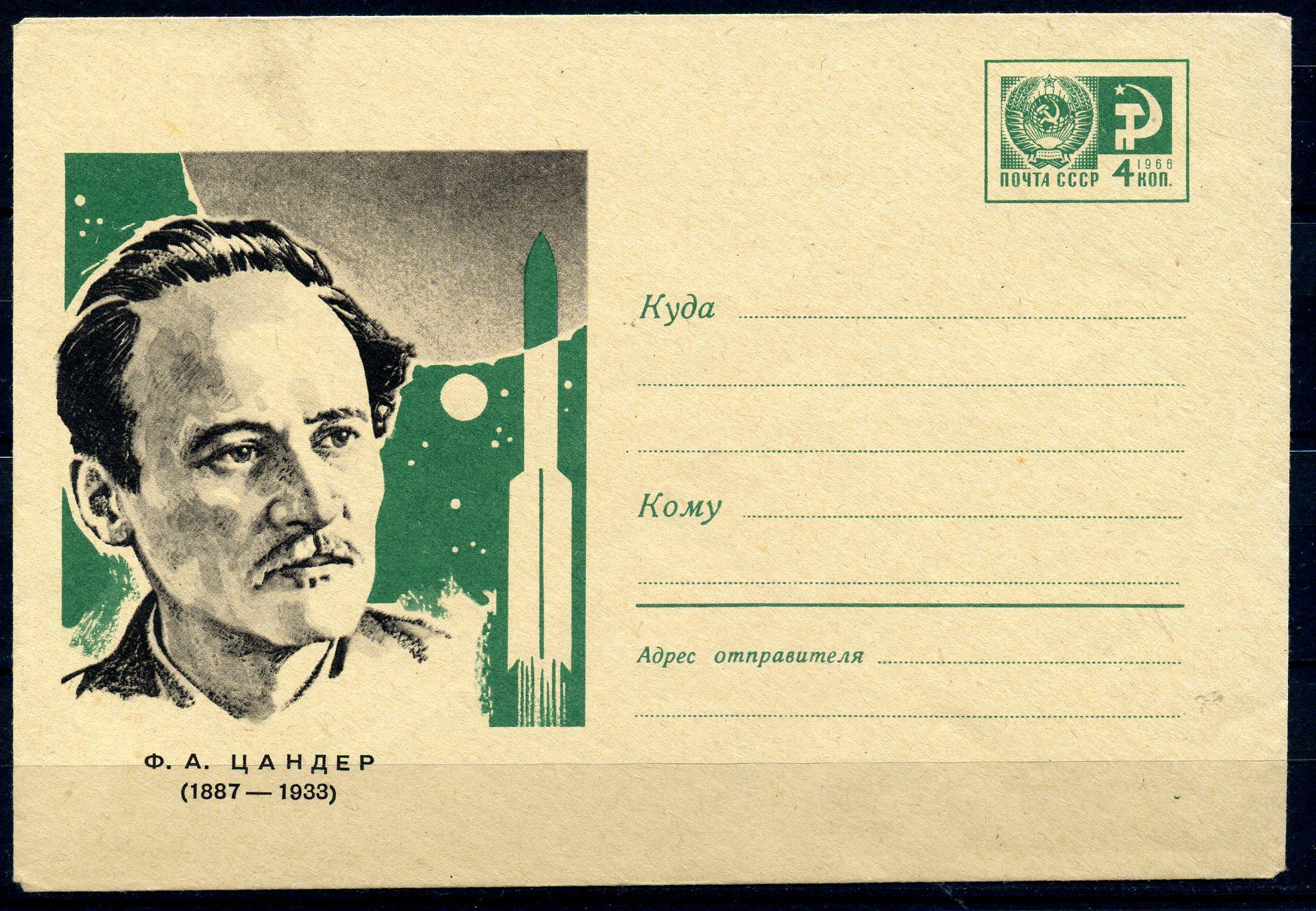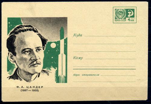 Почтовый конверт ХМК. СССР 1967 г. Ф.А. Цандер. КО. (кат. 900р.)