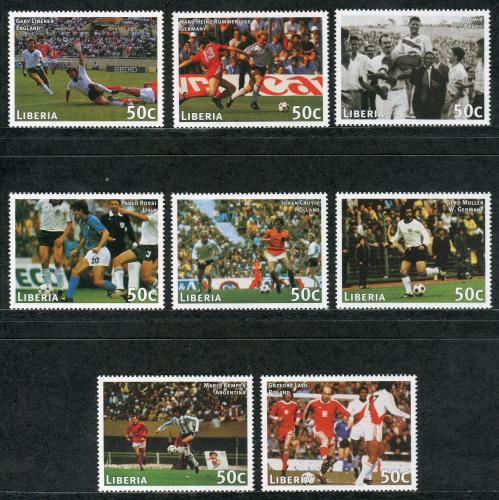 Почтовые марки. Либерия, 1997 г. Чемпионат мира по футболу, Франция (1998). №1963 - 1970.