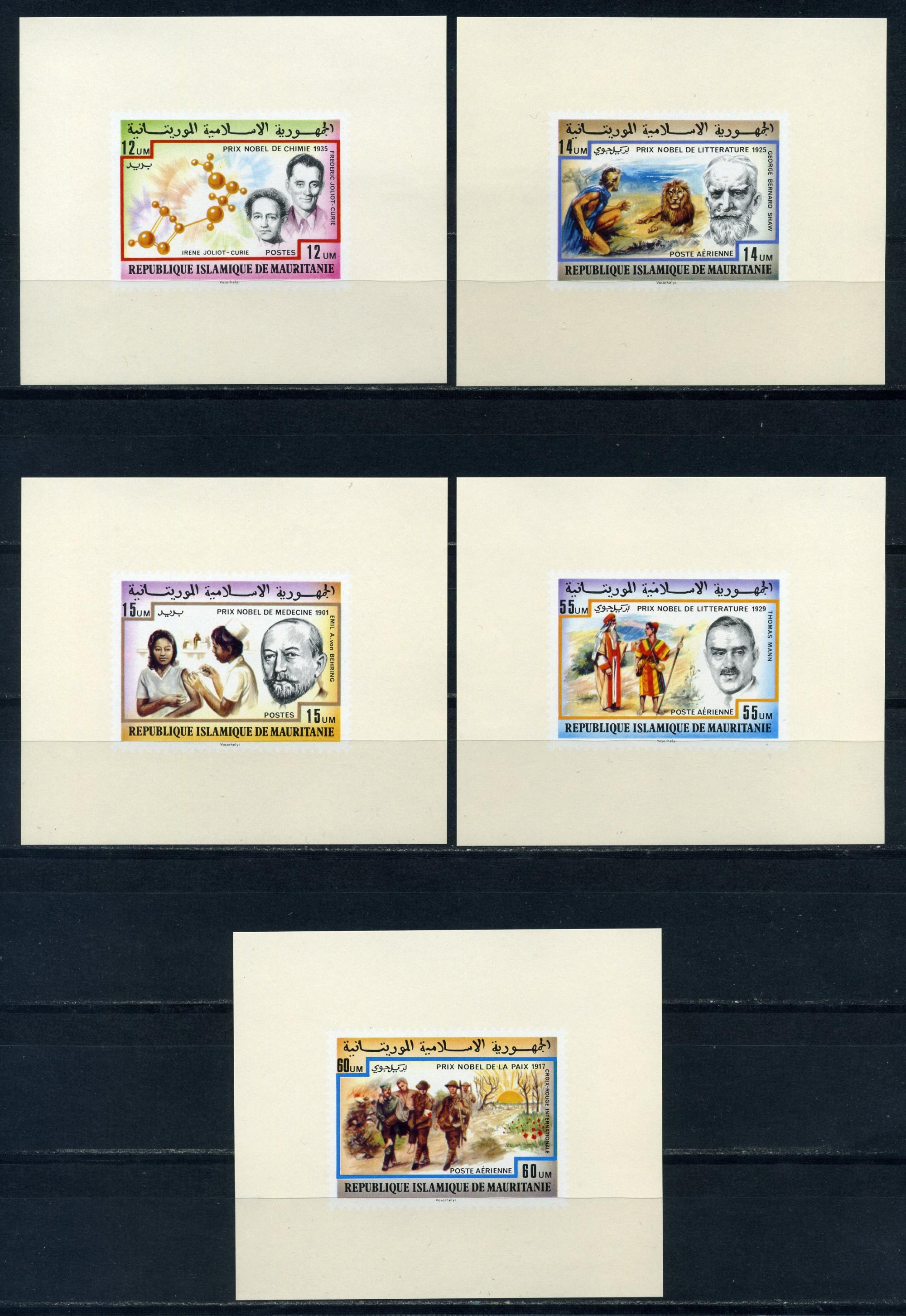 Почтовые марки. Мавритания. 1977г. Нобелевские лауреаты. delux-sheets. №563-567. Беззубц.