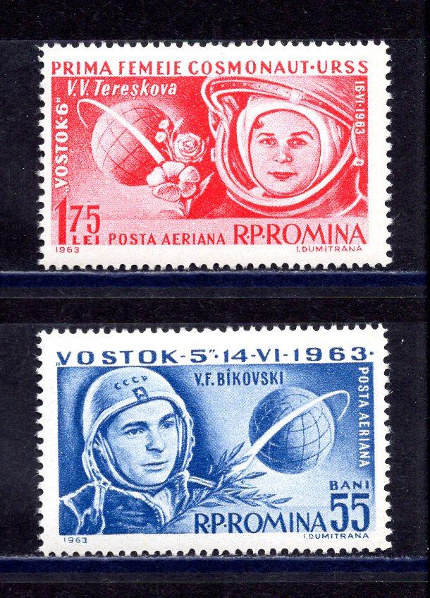 Почтовые марки. Румыния. 1963г. Космос. Восток-5. Терешкова. №2171-2172.