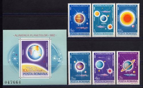 Почтовые марки. Румыния. 1965г. Космос. Планеты. №3795-3800. Блок №181.