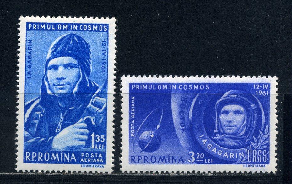 Почтовые марки. Румыния. 1961г. Космос. Гагарин. №1962-1963.