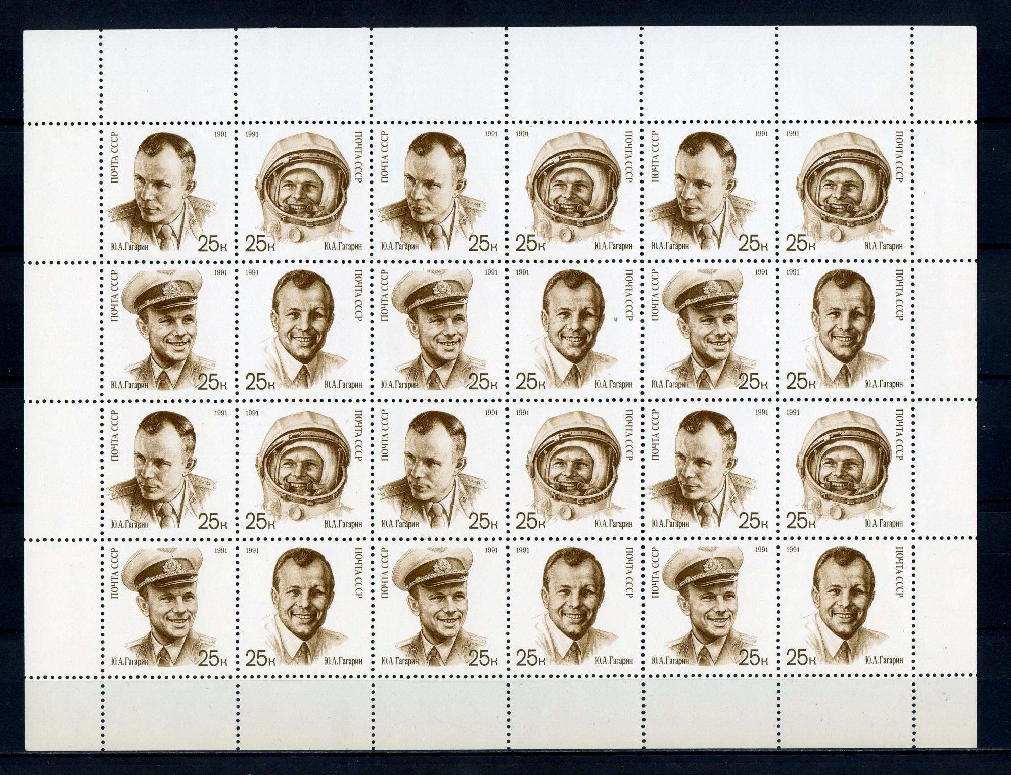 Почтовые марки. СССР. 1991. День космонавтики. Гагарин. № 6306-6309. Лист.