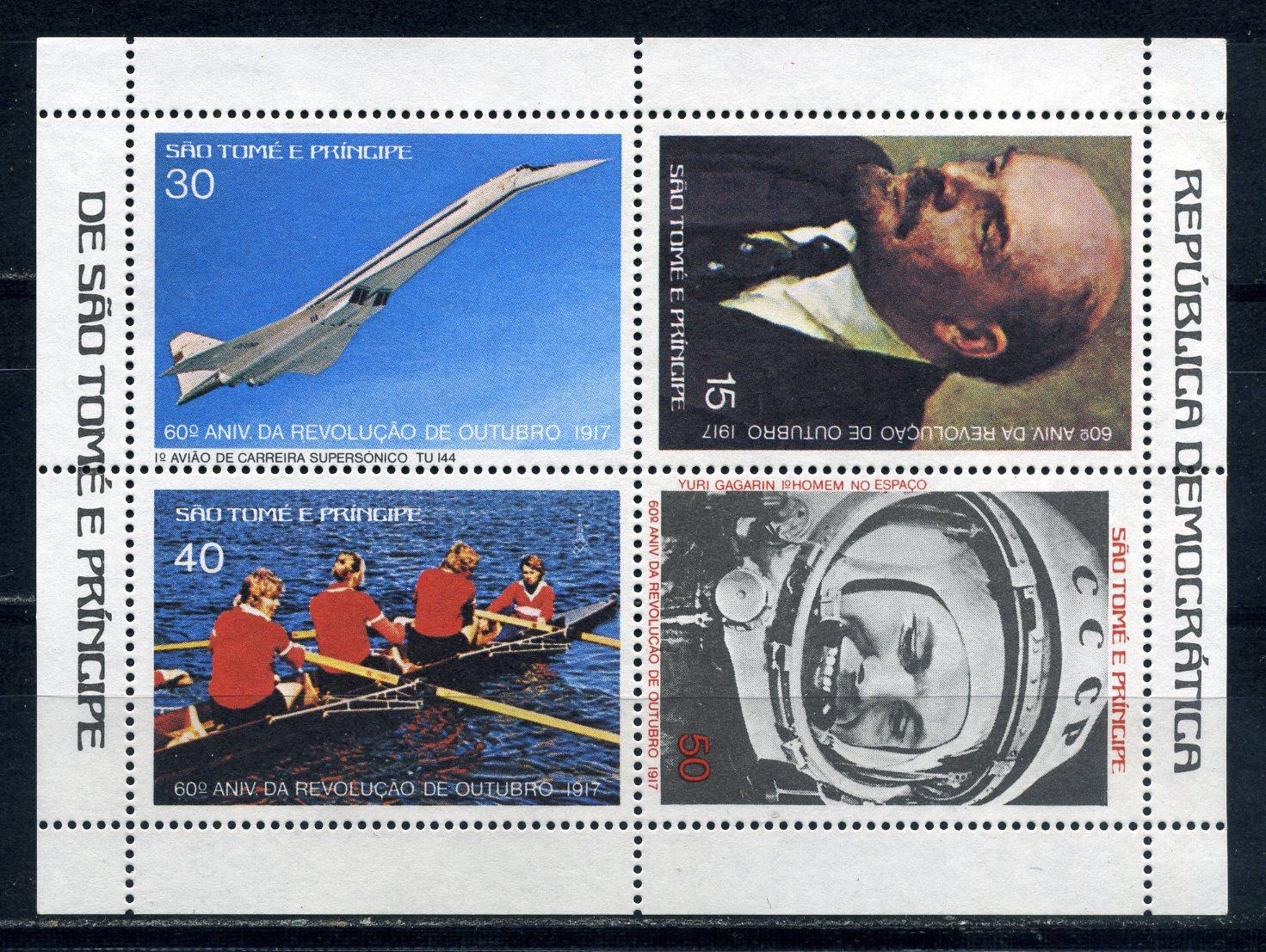 Почтовые марки. Сан-Томе. 1977г. Космос. Гагарин. Ленин. Блок №8 (Mi: 30.00 Евро).