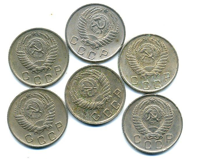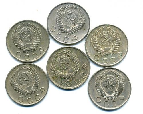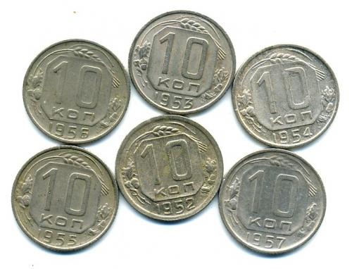 Монеты СССР. 10 копеек 1952-1957 г. 6 шт.