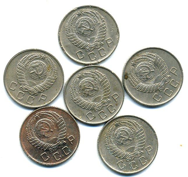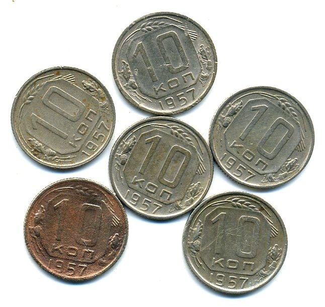 Монеты СССР. 10 копеек 1957 г. 6 шт.