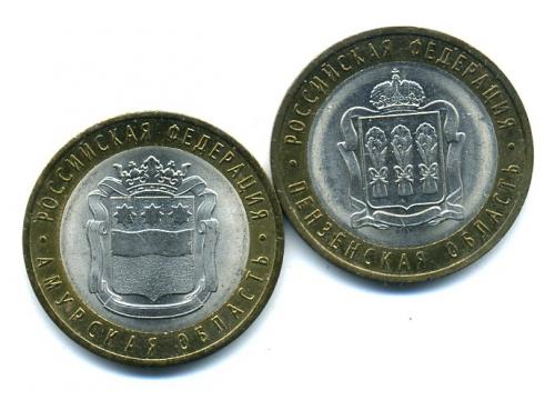 Монеты России. 10 рублей 2014, 2016 г. Амурская обл., Пензенская обл.