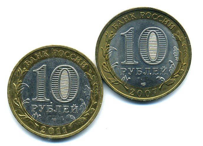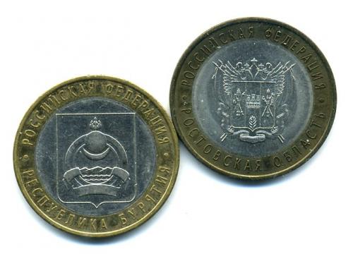 Монеты России. 10 рублей 2007, 2011 г. Республика Бурятия, Ростовская обл.