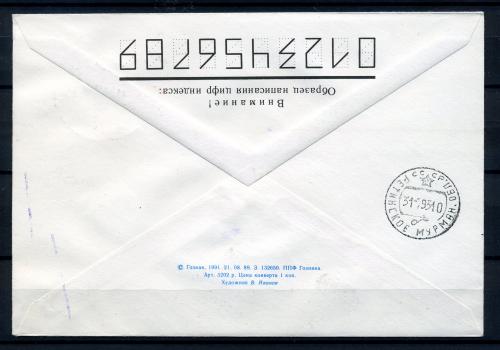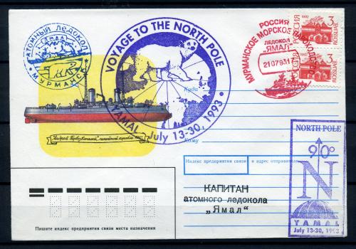 Конверт с марками и СГ. Россия 1993 г. Атомный ледокол "Ямал". Мурманское морское пароходство. КО.
