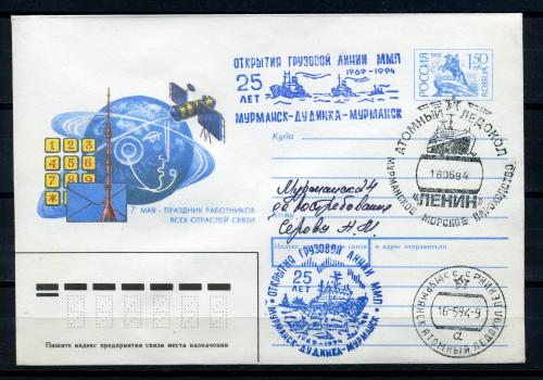 Конверт с маркой и СГ. Россия 1994 г. Атомный ледокол "Ленин". 25 лет открытия грузовой линии ММП Мурманск-Дудинка-Мурманск. КО.