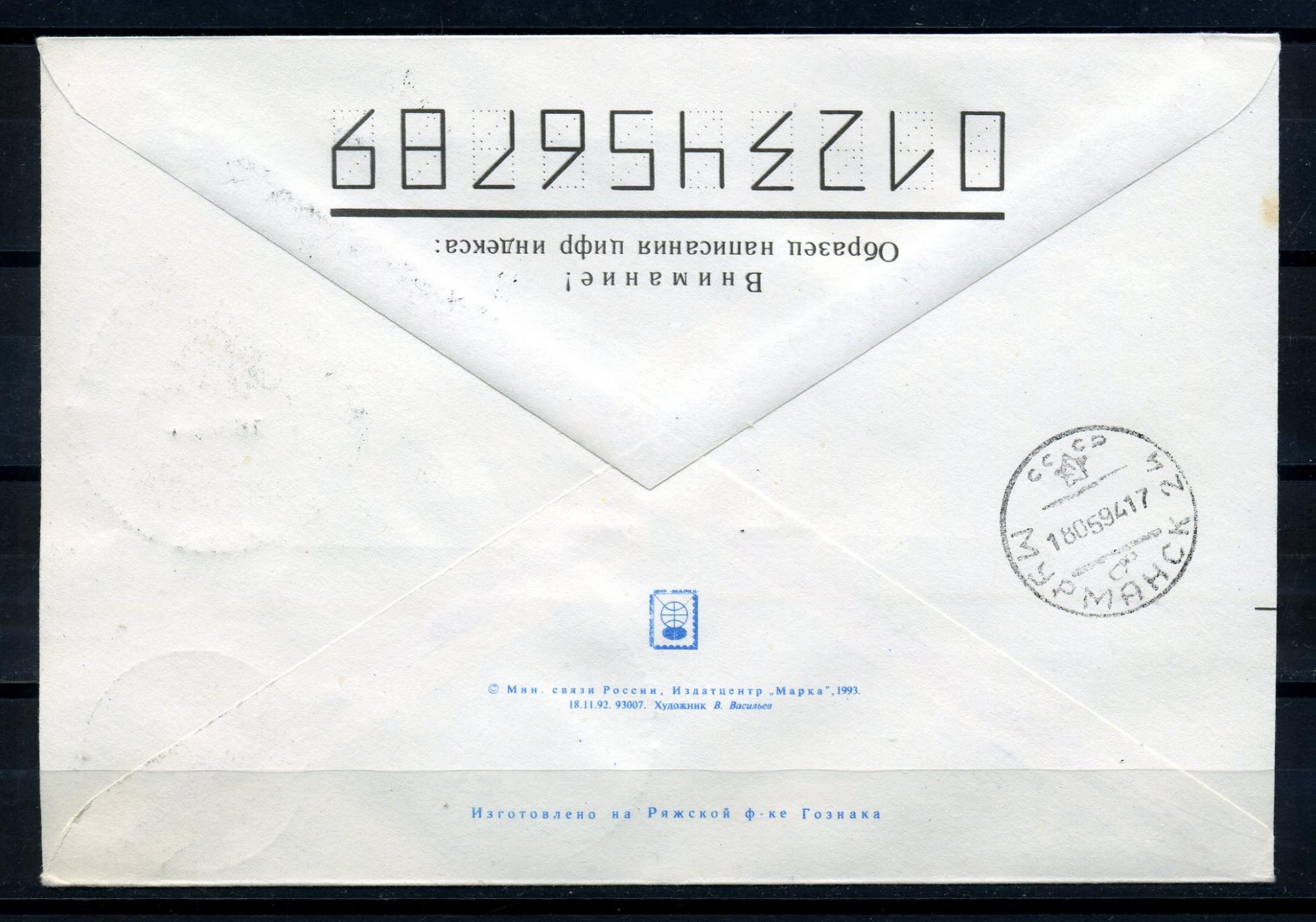 Конверт с маркой и СГ. Россия 1994 г. Атомный ледокол "Ленин". 25 лет открытия грузовой линии ММП Мурманск-Дудинка-Мурманск. КО.