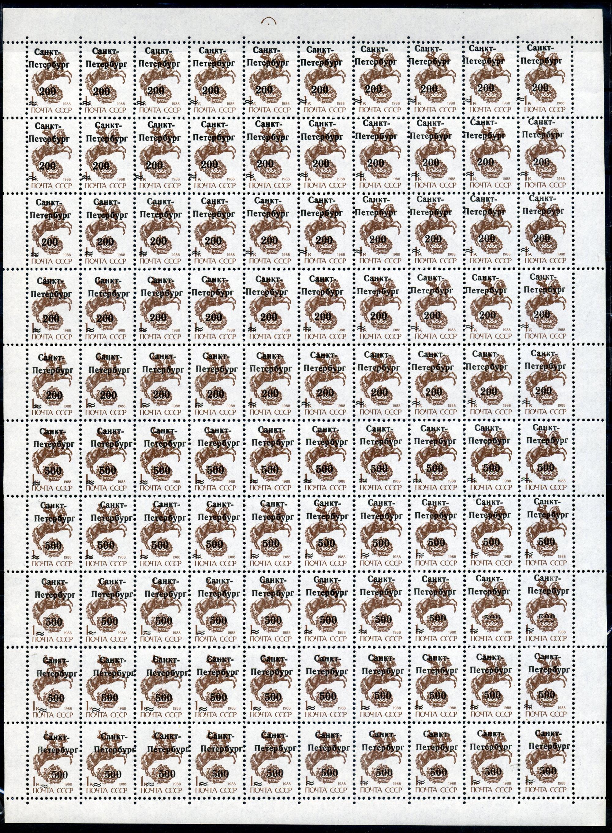 Почтовые марки. С-Петербург. Локальная почта. 1988. Cтандарт. Надпеч. (200 и 500) ЛИСТ. № L4+L5.
