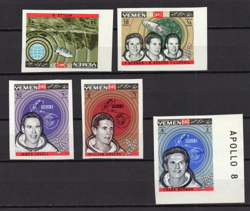 Почтовые марки. Йемен. 1969г. Космос. Аполло-8. №652в-656в. Беззубц.