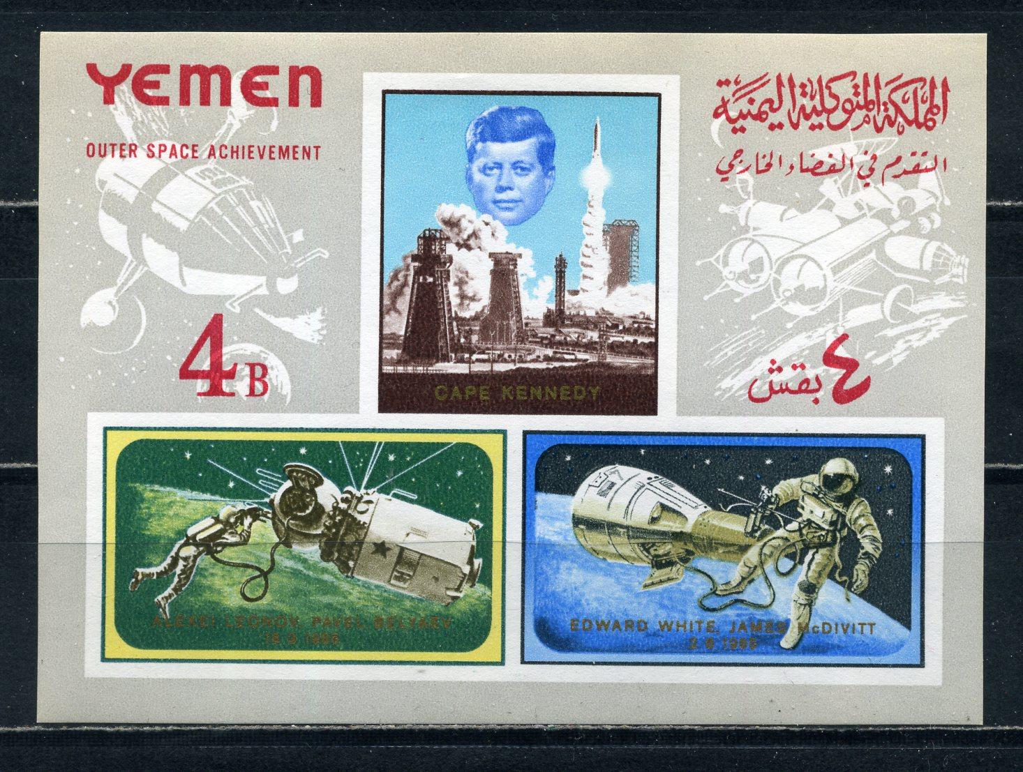 Почтовые марки. Йемен. 1965г. Космос. Леонов. Блок №27в. Беззубц.