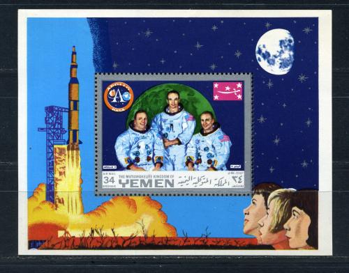 Почтовые марки. Йемен. 1969г. Космос. Аполло-11. Блок №160.