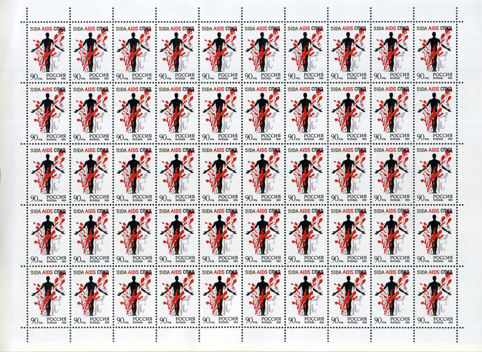 Почтовые марки. Россия. 1993г. Остановить СПИД. №128. Лист.