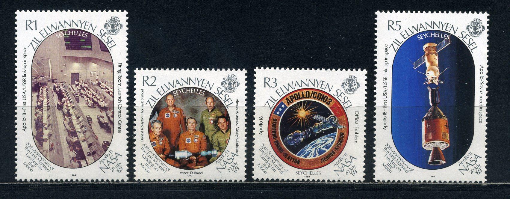Почтовые марки. Сейшелы. 1989г. Космос. 20-летие высадки на Луну. №166-169.