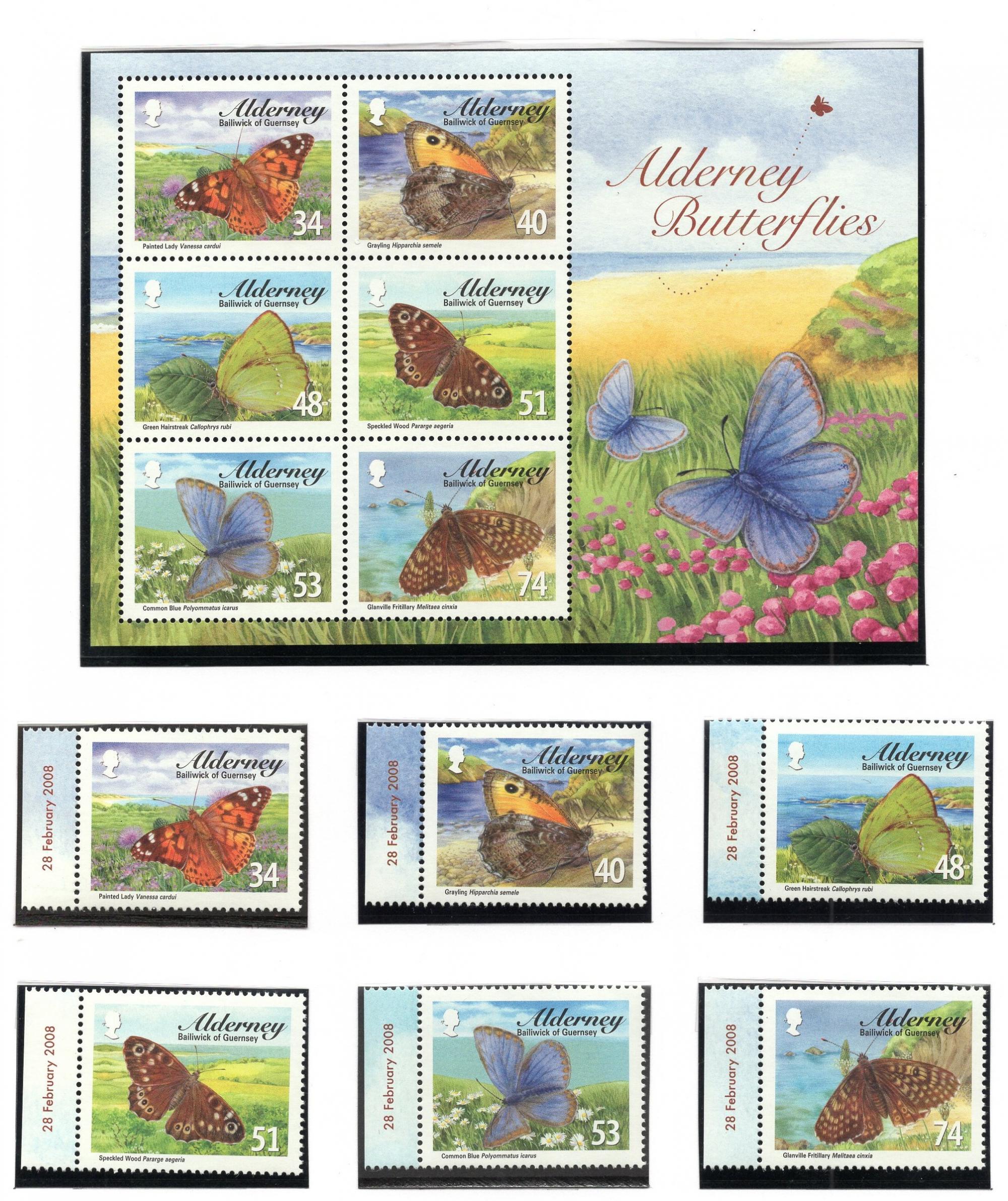Почтовые марки. Олдерни, 2008 г. Бабочки