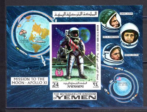Почтовые марки. Йемен. 1969г. Космос. Аполло-11. Блок №165в. Беззубц.