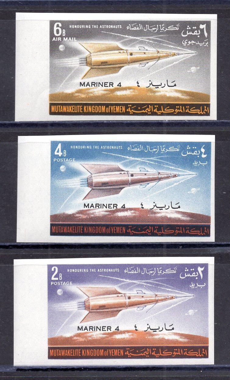 Почтовые марки. Йемен. 1965г. Космос. Маринер-4. Надпечатка. №165В-167В. Беззубц. (Mi: 35.00 Евро)