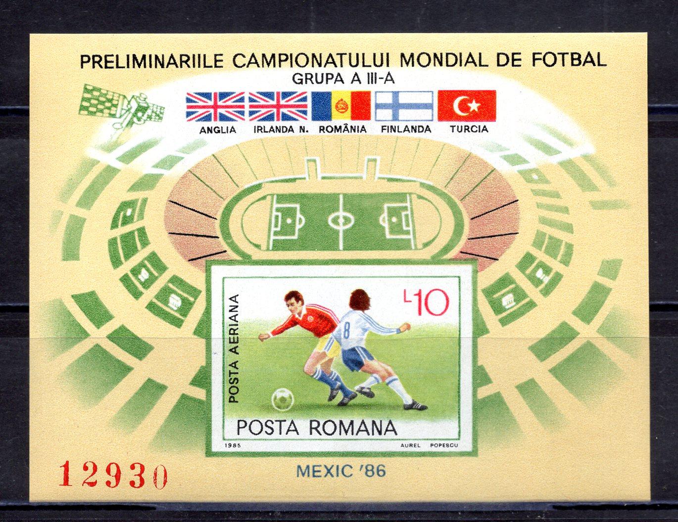 Почтовые марки. Румыния. 1985г. Футбол. Блок №219в. Беззубц.
