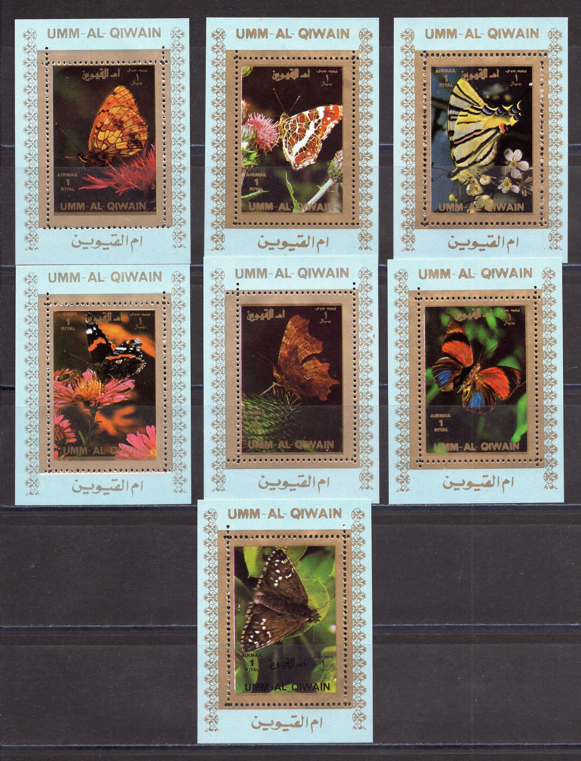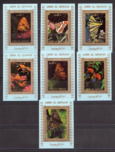Почтовые марки. Умм-эль-Кайвайн. 1972 г. Бабочки. Люкс-блоки. Комплект. Зубц. Без клея. №1498-1513.