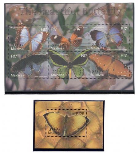 Почтовые марки. Мальдивы, 2002 г. Бабочки. №3987-3992. Бл. 524. (19,0 е)