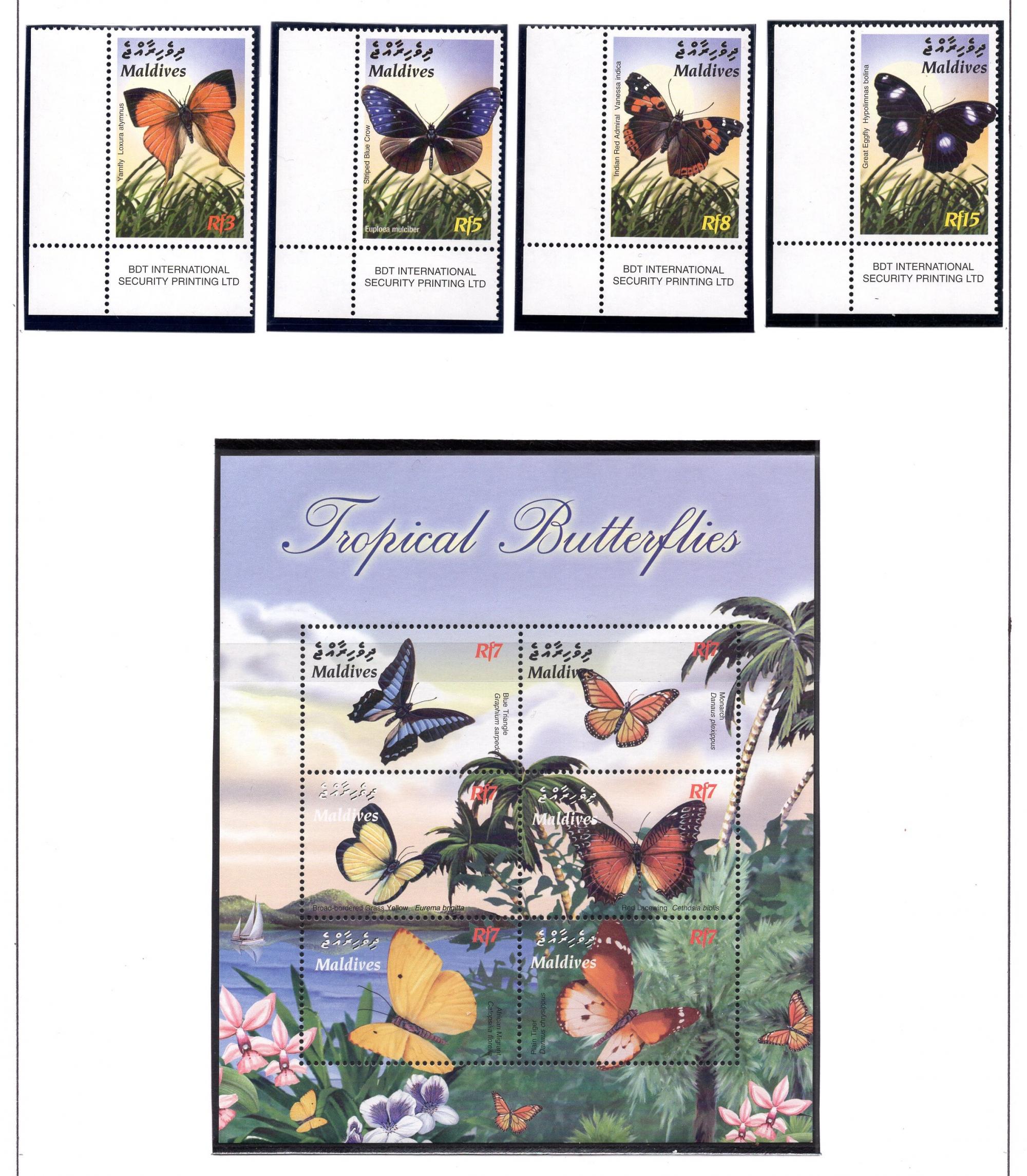 Почтовые марки. Мальдивы, 2003 г. Бабочки. №4188-4191, 4192-4197, Бл. 550. (19,50 е)