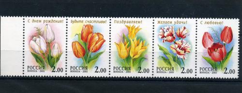 Почтовые марки. Россия. 2001 г. № 657-661. Цветы. Тюльпаны. СЦЕПКА.